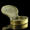 Condition: intact and in good solid condition with a functional hinged lid. The box retains a warm golden surface with minor signs of wear os cratches. A charming and unusual small personal container, likely intended for snuff, pills, or other small contents.